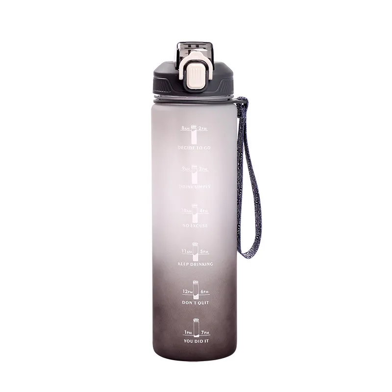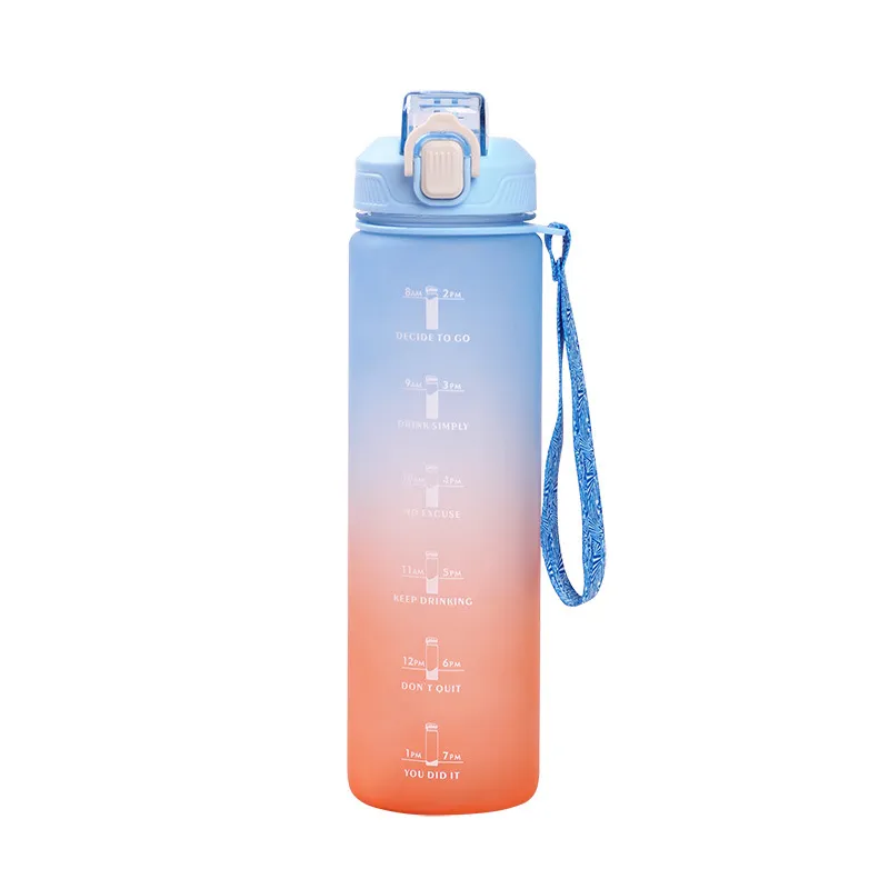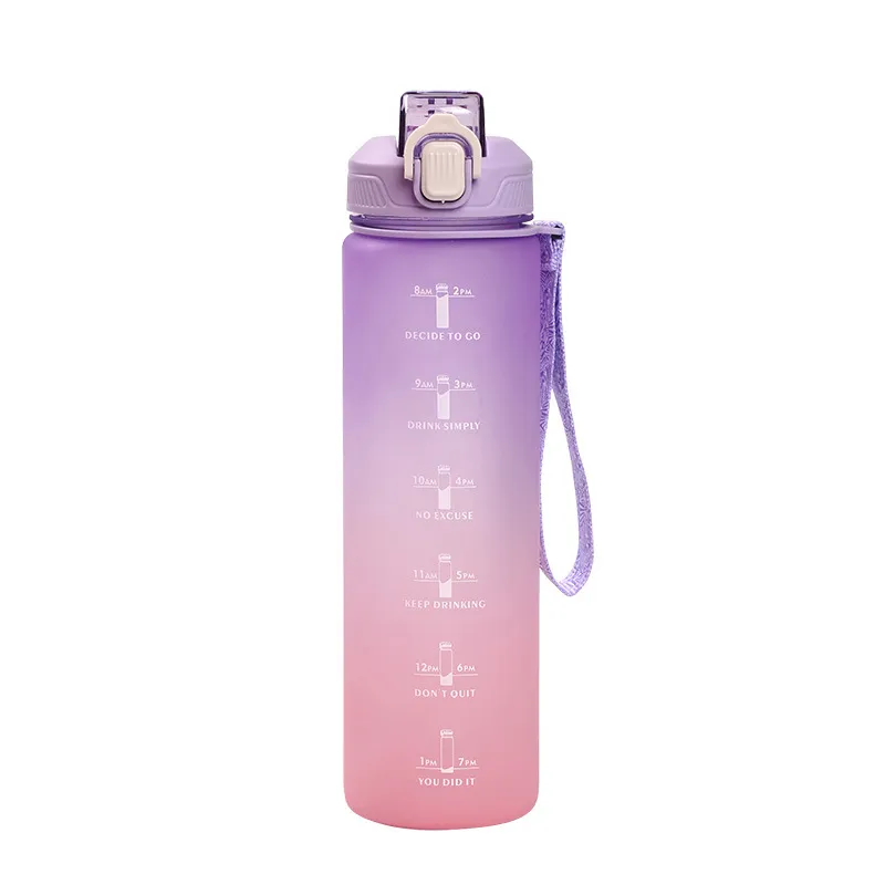 새로운 패셔너블한 대용량 야외 프로스트 플라스틱 컵 그라데이션 스포츠 휴대용 물병 눈부신 컬러 공간 직접 식수 컵
